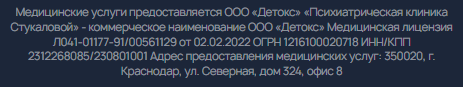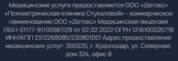 Медицинский центр лечения зависимостей Екатерины Стукаловой в Дедовске предлагает избавление от алкогольной и наркотической зависимости. Услуги врача необходимы при получении прав, поступлении в учебные заведения, на службу, а также во время прохождения освидетельствования. Записаться на прием к врачу можно по телефону или на официальном сайте.